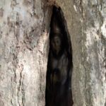 江戸時代の行脚僧(居所を定めず、あちこち旅をして修行する僧)「木喰上人」の作です。生きた銀杏の洞の中に祀られている点が、最大の特徴です。木が成長し、今では洞口が狭くなっているためかすかに見える程度となっています。